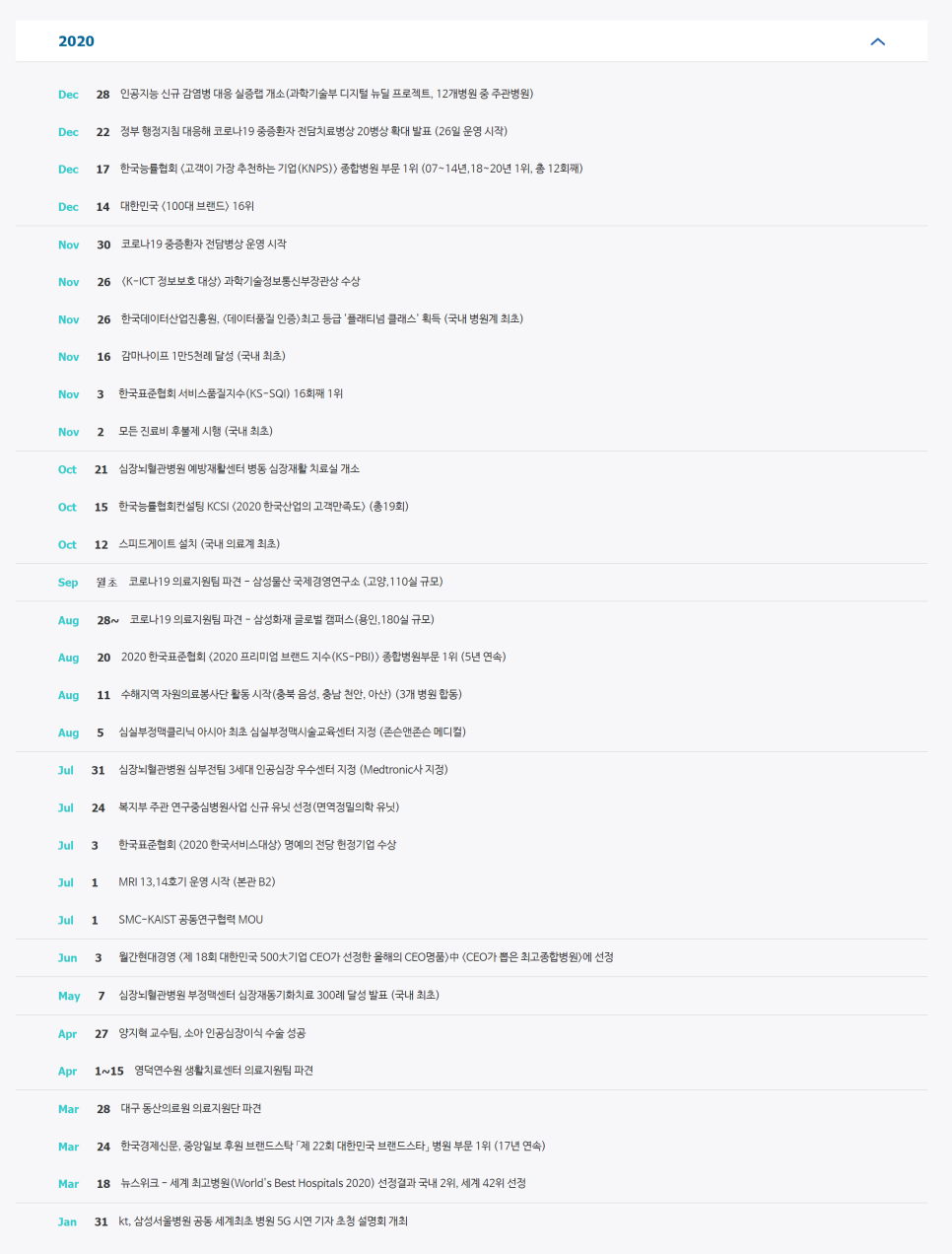 - ✔ 주요 사업: 암병원, 심장뇌혈관병원 등 특화된 전문 센터 운영, 스마트 병원 시스템 구축, 연구 중심 병원으로서의 역할 강화.