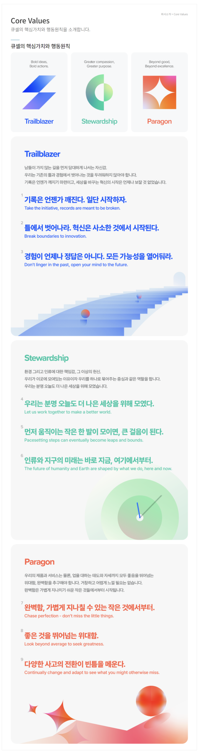 핵심가치: 고객 중심, 품질 우선, 혁신 추구