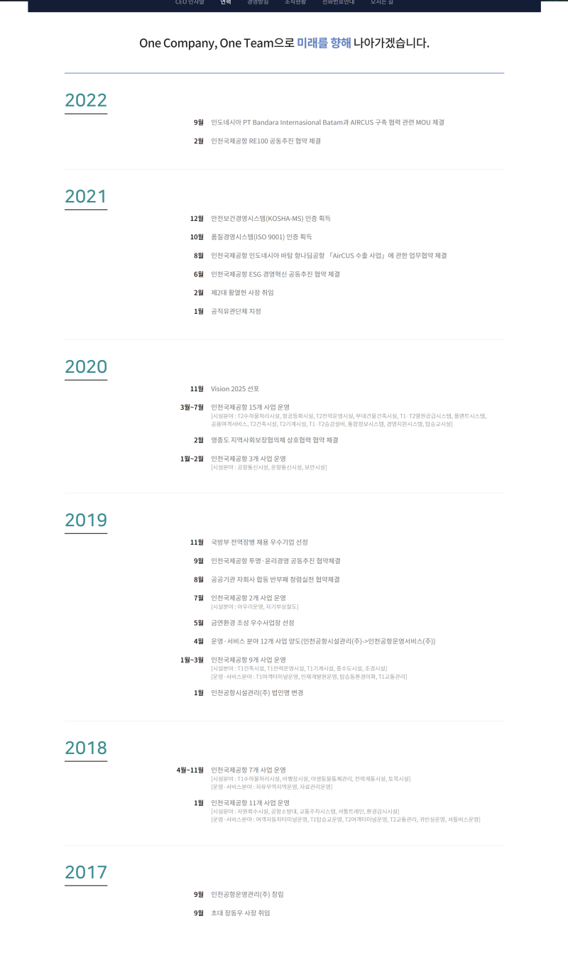 • 비전: 세계 최고 수준의 공항 시설 관리 기업