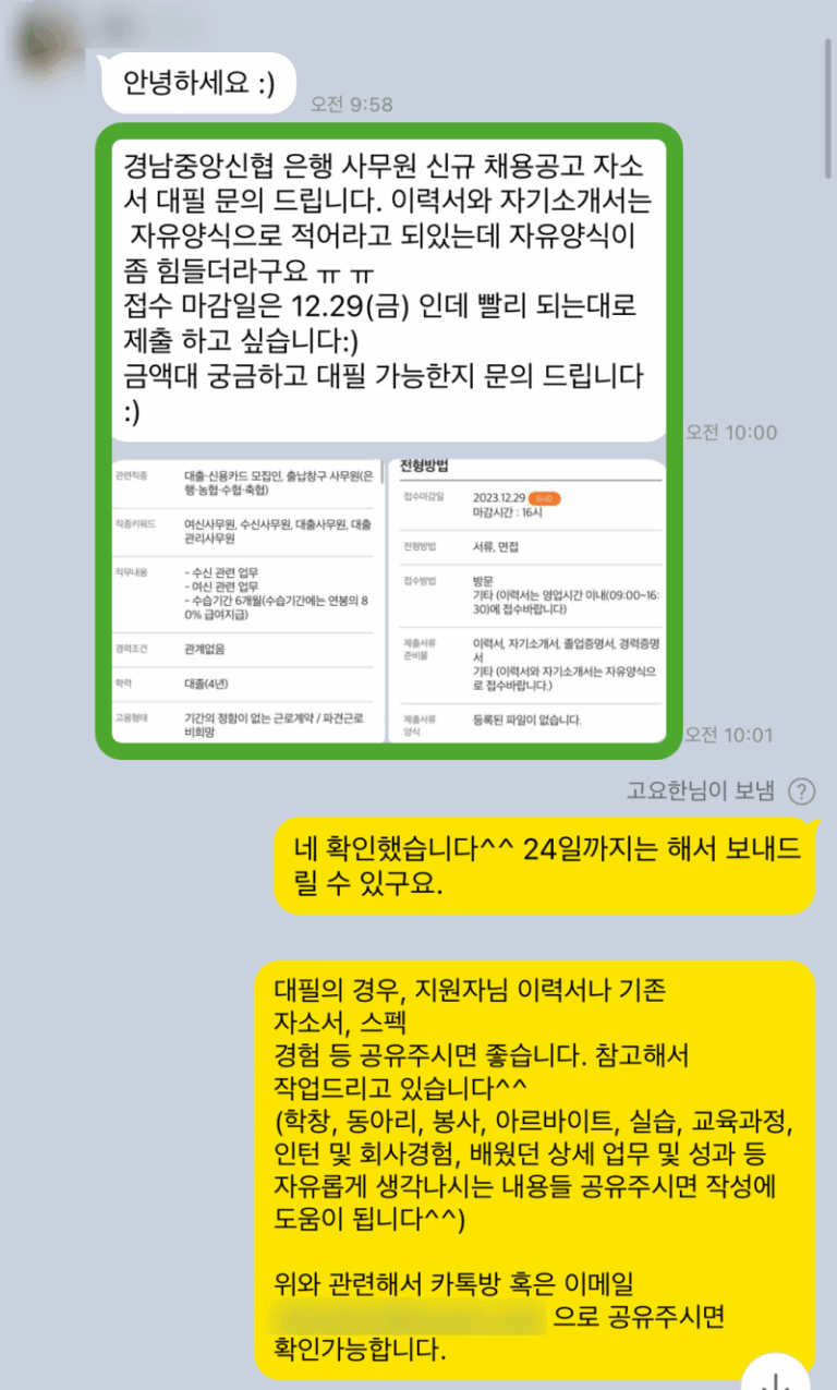 경남중앙신협 은행 합격 자소서! 금융권 자기소개서 대필 전문가의 작성 노하우 공개