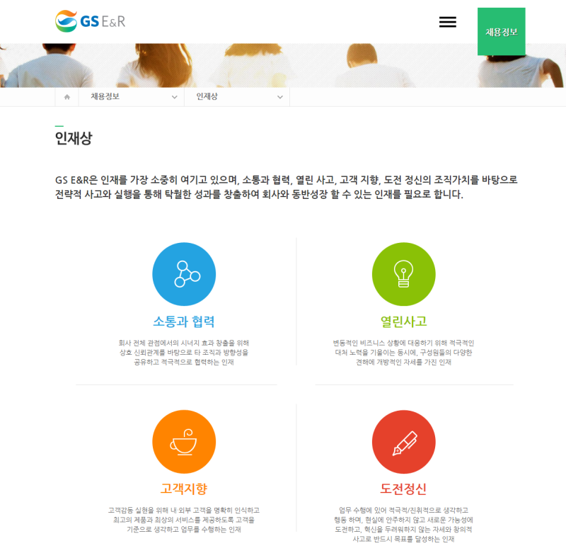 - 인재상: 창의적이고 혁신적인 인재, 도전 정신이 강한 인재, 소통과 협력을 중시하는 인재, 윤리적인 책임을 다하는 인재