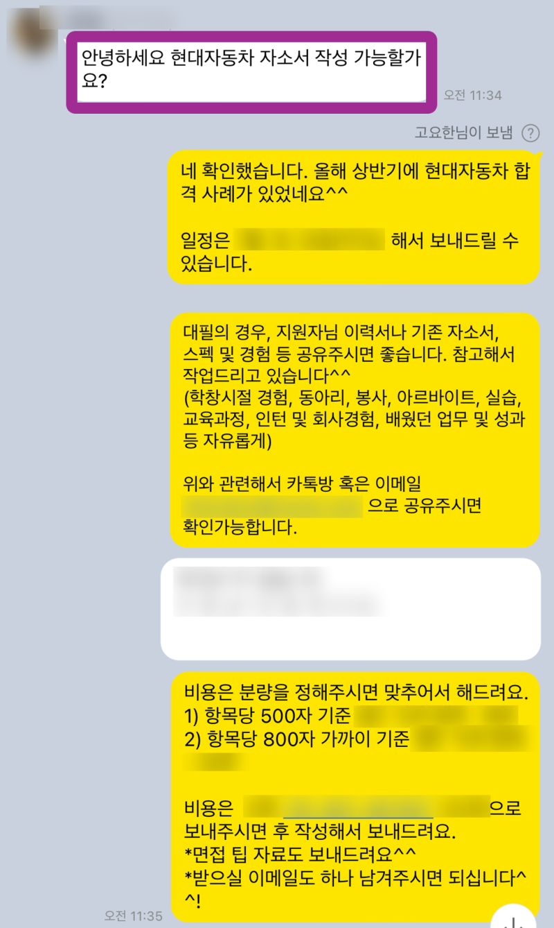>> 4단계: 맞춤형 자기소개서 첨삭/대필 작업 진행